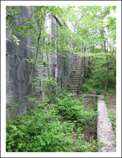 Die Geschützkavernen, oder besser deren Zugänge sind vergittert,