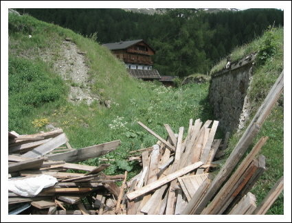 Im Schutz der starken Mauern haben die Bauern einige Unterstände gebaut.