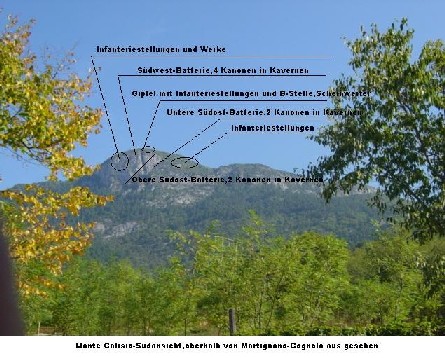 Gipfels befinden sich die ersten 2 Geschützstellungen mit Schussrichtung
