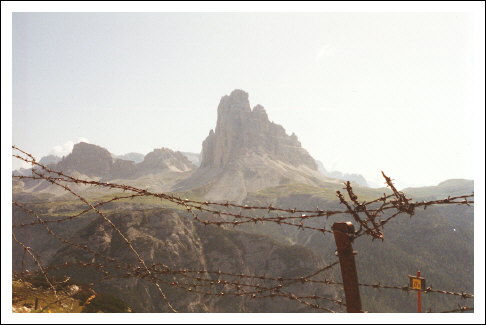 Der Blick zu den Drei Zinnen und dem Paternkofel. Im Fordergrund