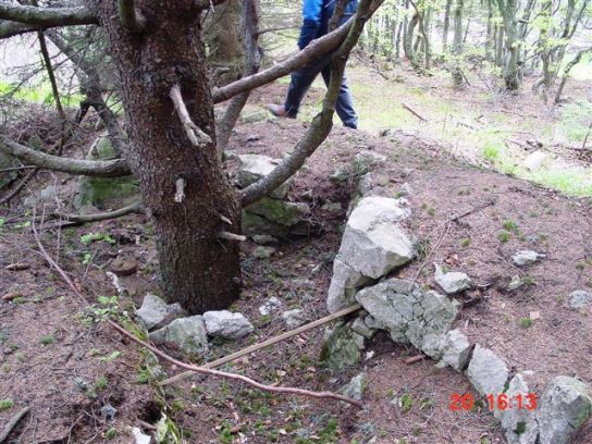 Reste der Linie bei Vazon, gleich hinter den Hotels (unterhalb Hotel Montana hinter einem Parkplatz) liegend und jeweils zwischen den Grenzen von Privatgrundstücken. Die beiden Teile sind nur ca. 50m auseinander, getrennt sind diese durch die Reste und Betonfundamente eines ehemaligen alten Skiliftes. ;-) VJ