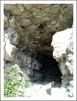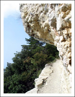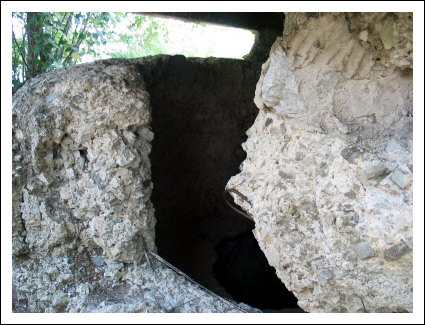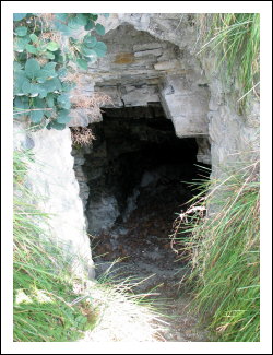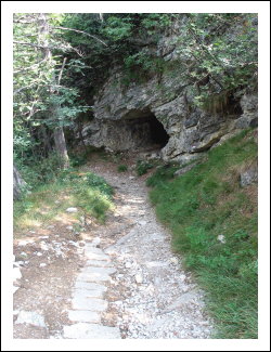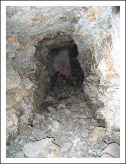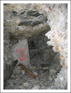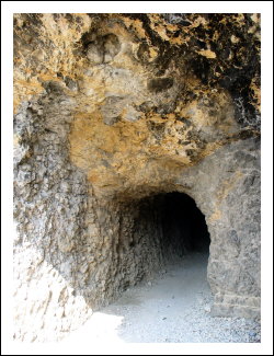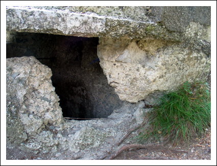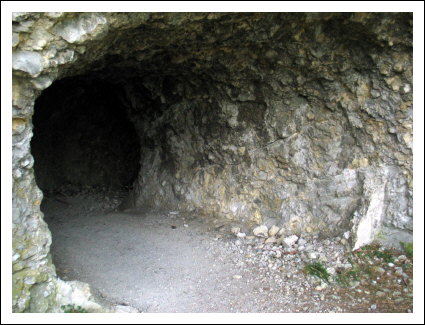 Der Weg führt zu einer Kaverne, vermutlich ein Materialdepot