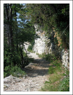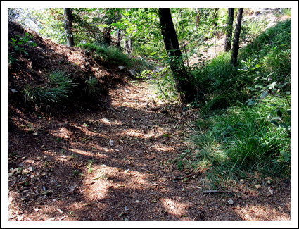 Ausgeschlagener Saumpfad zu einer Batterie auf dem Monte Castello