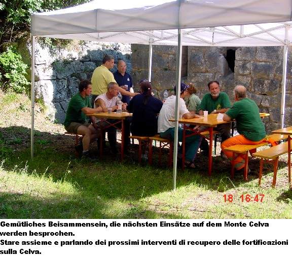 Die Gruppe des Zivilschutzes und der Alpini , die an der Instandsetzung der KuK-Anlagen des Monte Celva (Werk Selva) arbeitet. Alle opfern ihre Freizeit am Wochenende!