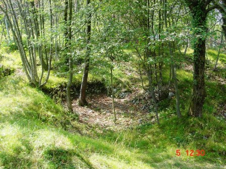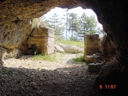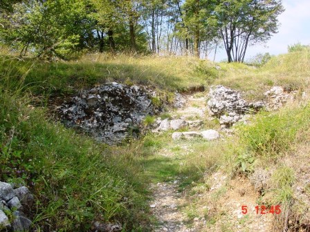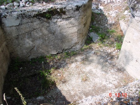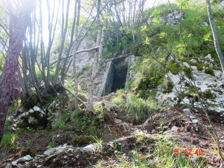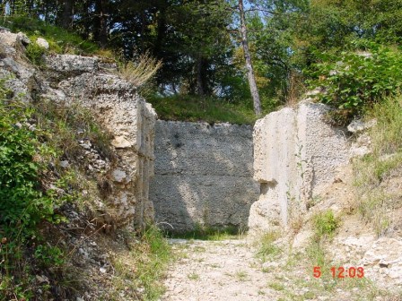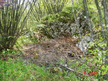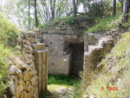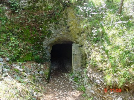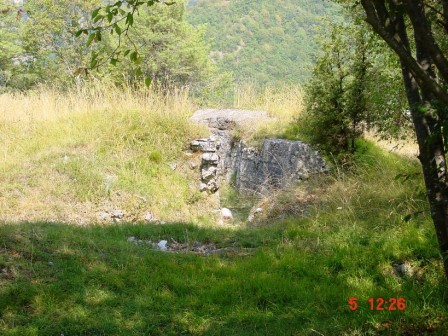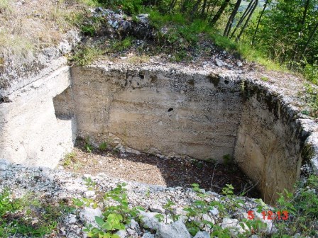 La batteria in caverna era per un pezzo 15cm/M16 o M17, direzione del tiro Zugna, le dimensioni della posizione sono enorme come anche la galleria d' acesso. Naturalmente a sinistra della posizione del riflettore vicino alla posizione del pezzo, non era il posto per un obice, ma semplicemente la casamatta per il generatore, visto ch aveva un tetto in lamiera revistito con calcestruzzo, la nicchia per il quadro e la piccola cisterna per l' acqua, che serviva raffreddare il motore. Ritengo utile di dire che un obice non spara da una posizione chiuso in calcestruzzo almeno alto 2 metri e naturalmente fa fatica spararetramite il tetto in calcestruzzo. Die Kavernenbatterie war für eine 15cm/M16 oder M17, Schussrichtung Zugna.die Grösse der Kaverne und des Zugangstunnels sind enorm. Links vom Geschütz war eine Scheinwerferstellung, wiederum links davon eine Betonkasematte, natürlich nicht für eine Haubitze sondern für den Stromgenerator, sie hatte eine Dach in Wellblech mit Betonüberdeckung, die Nische für die Schalttafrl und die kleine Wasserzisterne im Boden für die Motorkühlung, Haubitzen schiessen auch nicht aus Stellungen rundum mit 2 m hohen Beton verkleidet und vor allem schiessen sie nicht durch ein Betondach. VJ