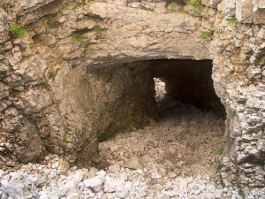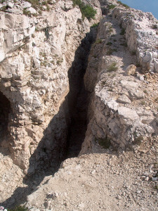 Die tiefen Laufgräben der Österreicher im Felsen des Ortigara, diese