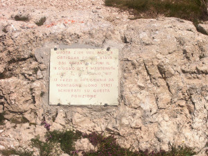 Tafel gleich neben dem Gedenkstein : Höhe 2105 des Monte Ortigara,