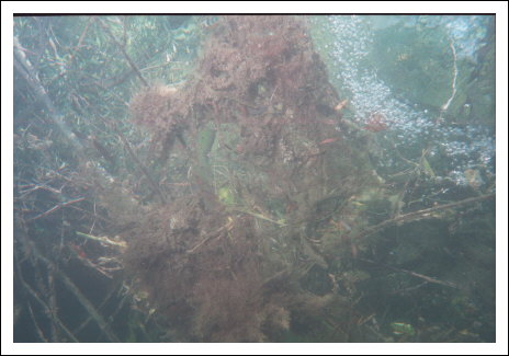 Einige Baumstämme bieten Fischen einen Unterstand.
