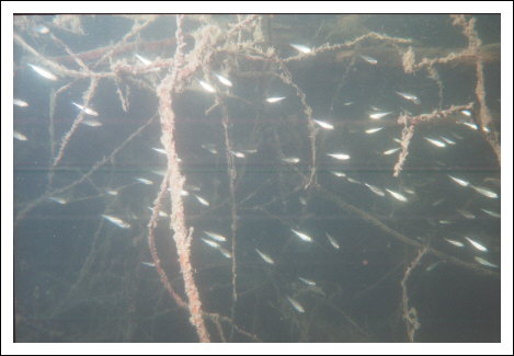 Die Jungfische halten sich im überwachsenen Uferbereich auf.
