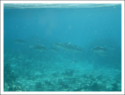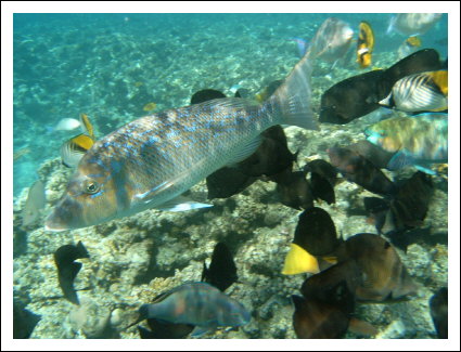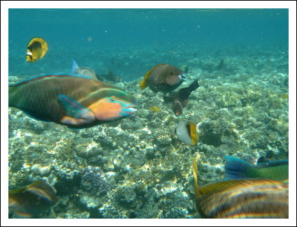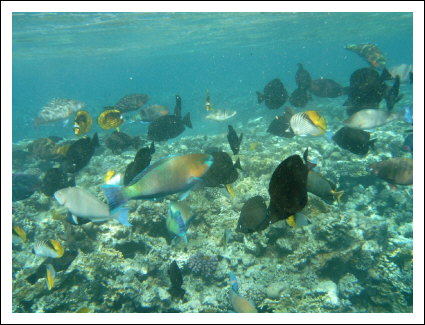 Besonders lustig wird es, wenn ein Papageifisch einen Seeigel geknackt hat und so viele Fische anlockt.