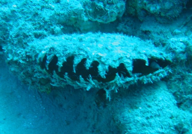 Eine zwei Handteller große tote Muschel diente vielen kleinen Fischen