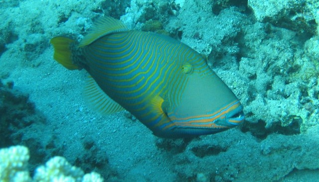 Ein letztes Foto für den gestreiften Drückerfisch und jetzt wurde es