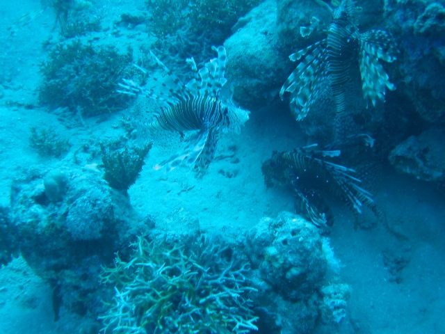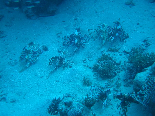 als sich hunderte von Rotfeuerfischen um die Korallenblöcke drängten und