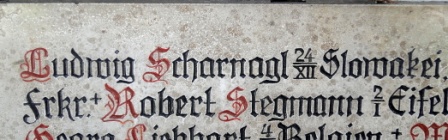 Hallo Uli, endlich habe ich es geschafft – das Kriegerdenkmal von Neumarkt St. Veit. Wie Du siehst ist auf einer Tafel vom 2. Weltkrieg auch mein Vater und der Großvater von Martin, der am 24. Dezember 1944 in der Ostslowakei gefallen ist. Gruß und Servus Dieter