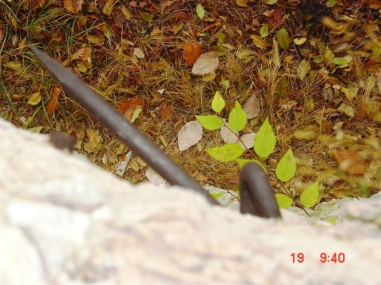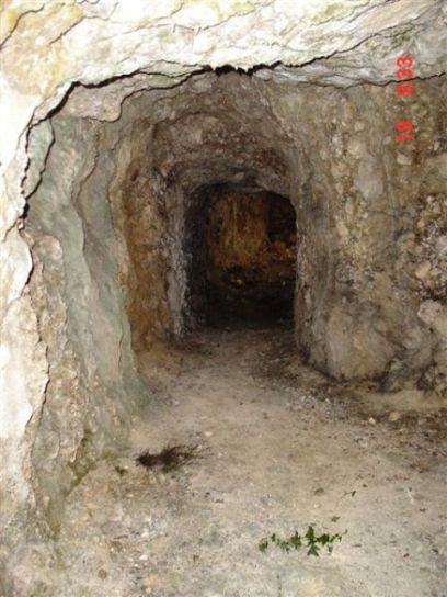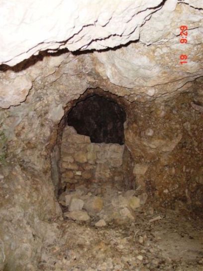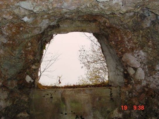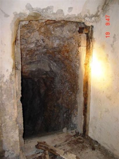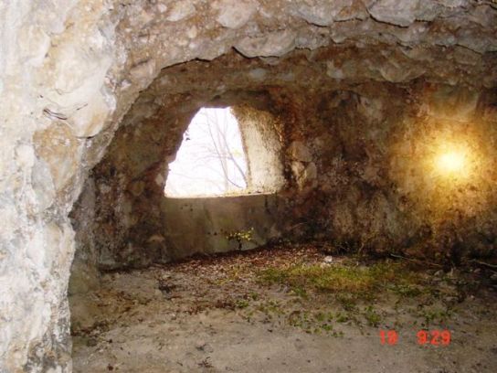 Uli Mößlang / Volker Jeschkeit Durchgang zur 1. Stellung (der Bauer hat da mal eine Trennmauer errichtet), Verbindungstunnel zur 2. Stellung, 2.Stellung und außen die Haken, die den Stacheldraht um die Geschützstellung hielten. Die Batterie ist trotz der reichhaltigen Regenfälle absolut trocken. VJ