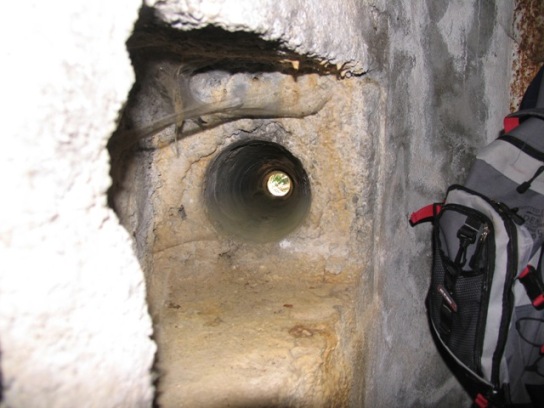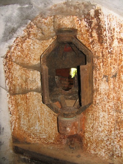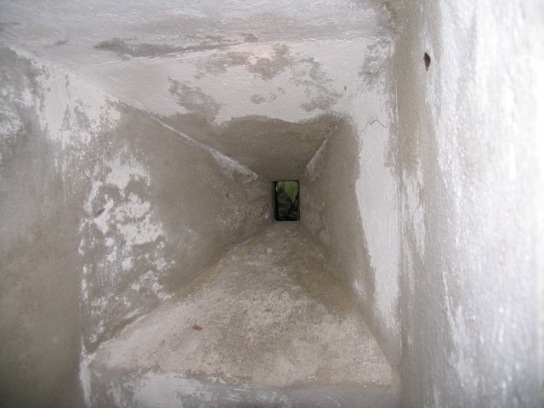 Die Schießscharte für die Bestreichung des Eingangsbereiches.