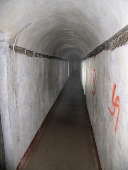 Ein Handgranatenloch, um das Vorfeld absichern zu können. Hier wurden die