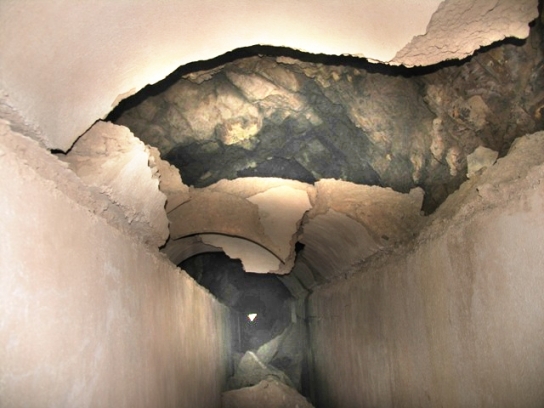An manchen Stellen ist der Gang eingebrochen und man kann den ausgeschlagenen Gang sehen.