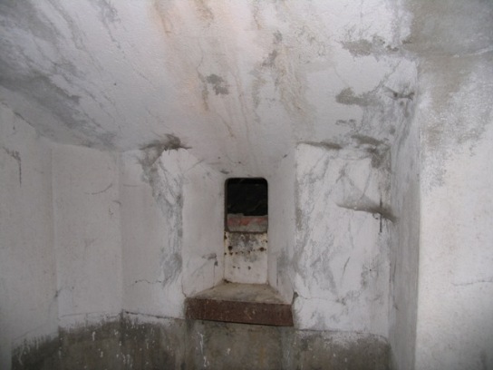 Gemauerte, oder besser, gegossene Regale für die Lagerhaltung in den Nebenräumen des Ganges.