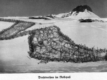 Blick über den Valparolapaß zum Settsass und Col di Lana. Standpunkt der Aufnahme ist oberhalb vom Valparola Lager (Lag da wo heute der Kriegerfriedhof Valparola ist)