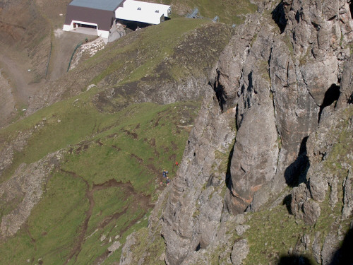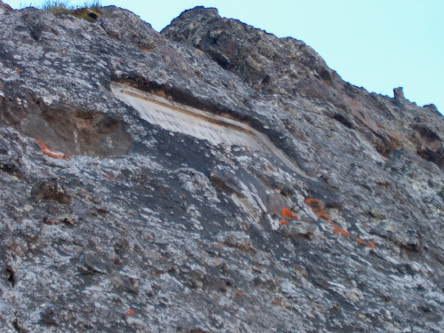 Der Einstieg zur Ferrata, diese Trittarme Wand haben wir uns geschenkt und sind über den Notausstieg weiter hinten in die Ferrata eingestiegen. Im weiteren Verlauf folgt die Ferrata erst der Österreichischen Stellungen und dann denen der Italiener. Die Ferrata ist dort als mittel bis schwierig eingestuft, Klettersteigset und Lampen sind unerlässlich!
