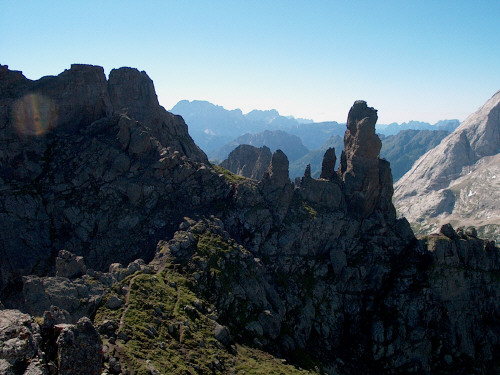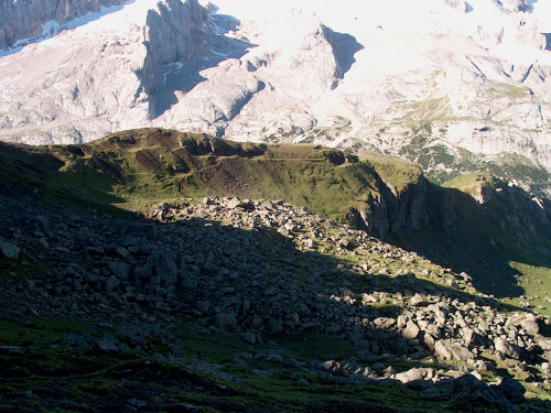 Diesel Kamm liegt zwischen der Marmolada und dem Col di Lana und gehört zu den fast vergessenen Frontender Dolomiten! Viele Stellungen und ein Wunderbarer Blick zu den Dolomitengrößen, einfach Traumhaft. Nur die Ferrata hat uns unsere Grenzen aufgezeigt. Bei Nordwestwand der Mésola mussten wir passen. Wir haben den Gipfel dann über die Südseite erstiegen.