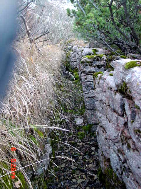 Ulrich Mößlang der Tauchbrillenspezialist Uli Mößlang / Volker Jeschkeit Hinter der Batteriestellung beginnt jetzt der Hauptkampfgraben, der auf dem Grat des absteigenden Palon verläuft. Das Dickicht ist schon zu sehen, nach einigen Metern verschwindet der Graben darin. Mein Freund Arturo betrachtet aufmerksam die sauber geschichteten Natursteinwände des Grabens, Franco ist schon im Dickicht verschwunden. Dabei hat er sich die Daunenjacke zerrissen, wir hören ihn nur rufen und folgen der Spur weißer Daunen im Unterholz.