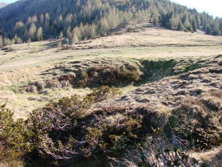 Anweisungen per Telefon. Trattasi della batteria sul Weitjoch (Panarotta), formato da 2 cannoni 12cm/M80 provenienti dal smontaggio del forte Colle delle Benne. Nelle foto si vedono i due posizioni in barbetta con il piccolo ricovero delle munizioni. La gittata dei pezzi era 8,5 km, i serventi ai pezzi erano della seconda compania del battaglione d´artiglieria di fortezza Nr.1- Trento (Comandante: Tenente Hochhauser), un corpo d´elite! I fuoco fu guidato tramite linea telefonica dal´osservatore sulla Panarotta (caverna con pozzo verticale e cupola corazzata fissa). VJ