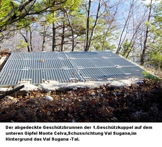10cm/M5 Panzerkuppel Das Bild zeigt die Kuppeln auf dem Werk Hensel, die beiden Kuppeln der Haubitzbatterie auf dem oberen Gipfel des Monte Celva waren vom gleichen Typ. Diese Panzerkuppeln wurden auch auf dem Stützpunkt Busa Granda oberhalb von Levico montiert. Villamontagna-Trient im