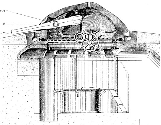 Panzerkuppel montierte einen 15cm Mörser mit einer Reichweite von ca.