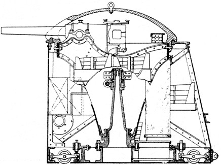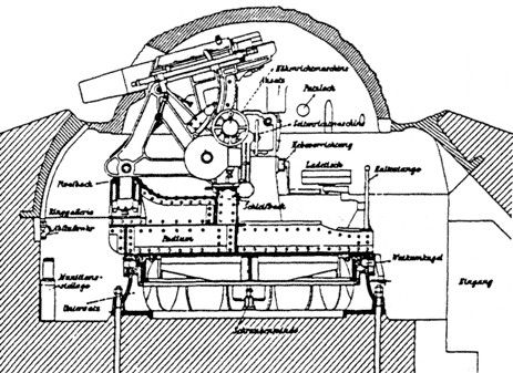 Drehlager waren integraler Bestandteil der Panzerkuppel, die Lafette