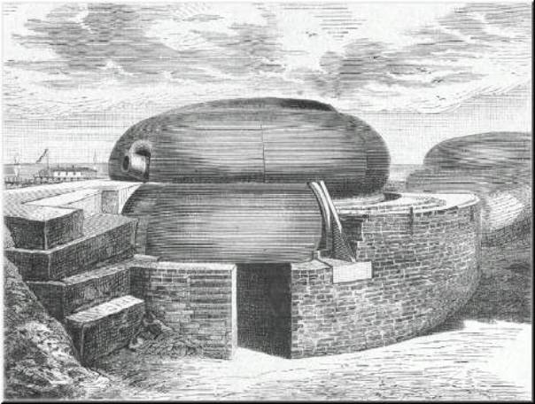 10cm oder 15cm Panzerhaubitze M99 oder M5 in 15cm Panzermörserlafette. Nachfolgend einige Schnittzeichnungen und Fotos der älteren Panzerkuppeln: