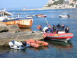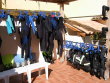 Basis: Die seit 16 Jahren bestehende frisch renovierte Tauchbasis liegt direkt an der Hafenpromenade von Puerto de Andraitx. In unmittelbarer Nähe zur Tauchbasis befindet sich der Anleger für zwei Tauchboote mit denen in der Regel 2 Mal am Tag eine Ausfahrt stattfindet. Nach Bedarf werden auch weitere Ausfahrten sowie Nachttauchgänge angeboten. Die Tauchbasis ist in einem Laden untergebracht, der mit Empfangsbereich, Schulungsraum, einem kleinen Shop und dem Kompressor-Raum ausgestattet ist. Durch den Empfangsbereich gelangt man in einen Hof in dem sich viele Aufhängemöglichkeiten ( für die Tauchklamotten ) befinden. Weiterhin stehen 3 Warmwasserduschen, Sitzgelegenheiten, ein Kühlschrank mit Erfrischungsgetränken und ein abschließbarer Boxenraum zur Verfügung. Die gesamte Basis ist mit gesandeten Fliesen ausgelegt, die ein rutschen verhindern. Sie ist ausgestattet mit 50 Stück 10 Liter Alu Flaschen, sowie 12 Stück 12 Liter Alu Flaschen, die mit Hilfe eines Bauer Kompressors befüllt werden. Die zahlreich vorhandene Leihausrüstung befindet sich in einem guten Zustand. Auch eine gut ausgerüstete Werkstatt beherbergt die Basis. Das gut eingespielte Team bestehend aus dem Besitzer Leo und zwei zusätzlichen Tauchlehrern, kümmert sich gewissenhaft um ihre Gäste. Die beiden zur Verfügung stehenden Tauchboote befördern die Tauchgäste in 5 bis 15 Minuten zu den ca. 30 verschiedenen Tauchplätzen. Ein Tauchboot ist ein 5 Meter Hartschalen-Boot mit Steuerstand und Leiter, das Zweite ein 7 Meter Schlauchboot mit Steuersand und einem 200 PS Außenbordmotor und Leiter. Beide Boote führen Sauerstoff an Bord und verfügen über eine Dekoschaukel, die bei jedem Stopp auf 5 Meter herabgelassen wird. Ausbildungen vom Schnuppertauchen im Meer bis zum Tauchlehrer sind nach VDST, SSI, DAN und CMAS möglich. Vor jeder Ausfahrt zieht man sich im Tauchschulenhof an. Von dort aus geht es den 50 Meter langen Weg bis zum Boot, an Bord wird das Gerät abgelegt und für die kurze Fahrt verstaut. Nach der Rückfahrt kann das Equipment aufgehängt und über Nacht im Hof hängen gelassen werden. Süßwasserbecken stehen zur Verfügung.