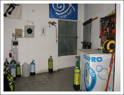 Die Tauchbasis liegt direkt am kleinen Hafen von Porto Petro ca. 100 Meter vom 5,5 Meter Schlauchboot mit 100 PS Steuerstand und kleiner Leiter entfernt. Die erst seit vor zwei Jahren übernommene Tauchbasis ist neu renoviert, im schönen Wintergarten-Anbau befindet sich sämtliches Equipment. Bei Bedarf kann die Glasfassade weggeschoben werden, so dass man freien Zugang auf die große Terrasse mit Sitzgelegenheit und einen Süßwassertrog hat. Dies verleiht der gesamten Basis eine Offenheit. Auf der Terrasse befinden sich Aufhängemöglichkeiten die abends in die Basis geschoben werden. Die 17 Leihausrüstungen sowie Leihanzüge befinden sich in sehr guten Zustand. Sämtliches Equipment ist mit Int-Anschlüssen ausgestattet, wobei lediglich der Int-Adapter aus den Din-Flaschen entfernt werden muss um den eigenen Din-Automaten anzuschließen. 35 Stück 10 und 12 Liter Stahl Flaschen werden von zwei Kompressoren im Keller des Hauses befüllt. Boxen für das persönliche Equipment stehen zur Verfügung. Im Haus befinden sich zusätzlich zwei Warmwasser- Duschen sowie ein großer Shop, in dem man von T-Shirts, Pullis und eine großen Auswahl an Tauch-Equipment erwerben kann. In der Regel befinden sich ein bis zwei Tauchlehrer auf der Basis. Am Tag werden zwei Ausfahrten zu den 17 verschiedenen Tauchplätzen gemacht. Diese starten um 10.00 und 15.00 Uhr von der Basis aus. Mit vollem Equipment geht man über die Hafenpromenade zum Boot und fährt direkt zum Tauchplatz. Bei Bedarf werden auch mehrere Ausfahrten angeboten, sowie Nachttauchgänge. Ausbildungen, vom Schnuppertauchen im Meer bis zu Tauchlehrer werden nach CMAS und VDST Standards angeboten.