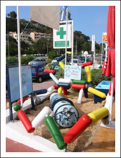 aktualisiert wird. Basis Die kleine, aber mit sehr viel Liebe gestaltete Tauchbasis, liegt direkt an der Promenade con Cala Galdana. Eine Skulptur aus alten Tauchflaschen, in allen Farben des Regenbogens bemalt und einer nicht mehr im Gebrauch befindlichen Einmann-Druckammer, gestalten die Terrasse der Tauchschule. Beim Eintritt in das Innere der Basis trifft man zuerst auf die kleine Rezeption, ein paar Schritte weiter steht man in einer nachempfundenen Tropfsteinhöhle, in der die zur Verfügung stehenden Boxen und das Equipment untergebracht sind. An einer kleinen Theke kann man sich Leihausrüstung geben lassen, die 25 kompletten Ausrüstungen sind in Top-Zustand. Das Anbringen eines neuen Mundstückes an den Leihautomaten gehört zum Service der Basis und macht das Ausleihen gleich etwas angenehmer. Ein großer Bauer Kompressor füllt im Keller der Basis die zur Verfügung stehenden 10 und 12 Liter Stahl Flaschen, die mit Int-Anschlüssen versehen sind, Adapter für Din-Anschlüsse sind zahlreich vorhanden. Nasse Anzüge können in einem separaten absperrbaren Raum der Terrasse aufgehängt werden. Eine interessante Lösung zum Aufhängen der Füßlinge bietet ein aus Holz gebautes Fischskelett. Normalerweise finden am Tag 2 Ausfahrten mit dem 7 Meter langen mit Steuerstand ,Leiter, Flaschenhalterung und natürlich Sauerstoff versehenen, 200 PS Schlauchboot statt. Die Fahrtzeit zu den 50 möglichen Tauchzielen beträgt zwischen 1 und 20 Minuten. Da das Boot sich im etwa 500 Meter entfernten Flusshafen befindet, wird kurzerhand alles in die zwei Mini Busse mit Anhänger gepackt und vor das Boot gebracht. Dort wird sich dann umgezogen und in See gestochen. Nach den Tauchgängen kann man sich gemütlich auf der Terrasse zusammensetzen und über die Erlebnisse des Tages diskutieren. Nachttauchgänge sind in der örtlichen Bucht möglich. Da die Ausfahrt mit dem Boot Wetter abhängig ist, stehen die zwei Mini Busse auch für Tauchgänge von Land bereit. Einige Top Spots sind eh nur von Land aus zu erreichen, wie der “Große Käse“, an dem ich zwei atemberaubende und unvergesslicheTauchgänge absolvierte. Auch ein paar eigene Breviers hat sich Horst einfallen lassen, die nur nach Bestehen von extrem herausfordernden Aufgaben ausgehändigt werden. Ausbildungen von Anfänger bis Tauchlehrer sind nach PADI Standards möglich, ebenso wie Schnuppertauchen im Meer. Ein Pool steht auch zur Verfügung. Man fühlt sich in dieser Basis mit den beiden Tauchlehrern und einem Assistenten sofort in guten Händen, da vor allem auf die Sicherheit großer Wert gelegt wird. Der Spaß vor, während und nach dem Tauchen darf nicht zu kurz kommen. Sogar der ungeliebte Teil des Bezahlens der Tauchgänge, wird mit einer sehr detaillierten, Computer unterstützten Rechnung interessant gestaltet. Als besonderes Extra gibt es noch die Premium Card dazu. Mit Hilfe dieser Karte erhaltet ihr bei eurem nächsten Besuch 5 % Rabatt, und falls ihr einem neuen Gast diese Basis weiterempfehlt, bekommt ihr für jeden 10. Tauchgang des Neukunden einen Gratis-Tauchgang bei eurem nächsten Besuchs im Sub Morena.