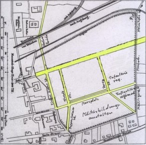 Der heutige Straßenverlauf auf dem Marsfeld. |