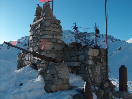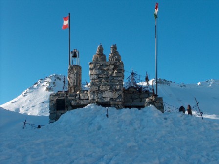 Das Denkmal steht beim Passo Paradiso oberhalb vom Tonale - Monticellograd. Im Hintergrund sind der Steinhartberg (links) und Cima Presena rechts zu sehen. Nicht schlecht gell, die Büsten zeigen einen Alpino und einen Kaiserschütze (Landesschütze). Hatten gestern eine Tolle Tour, super Wetter und Sicht. Von der Spitze der Presena hatten wir Sicht auf die ganzen Frontberge der südlichen Ortlergruppe und der Adamellofront. Monte Vioz, Punta San Matteo, Giumella, Albiolo, Monticellograt, Castellacio, Presenagletscher, Busazza, Zigolon, Ronchinagrat, Stablel, Crozzon di Folgarida bis Corno di Cavento um nur die wichtigsten zu nennen. Es ist ein unglaublich riesiges Gebiet, und überall war dort die Front der Kaiserschützen und Alpini! Die Stellungen am Zigolon, Busazza und Ronchinagrat sind extrem, wenn ich daran denke das da gekämpft wurde wird mir schwindelig. Um diese Berge zu besteigen muss man ein echt harte Knochen sein! Ich kann es auf alle Fälle nicht! wp