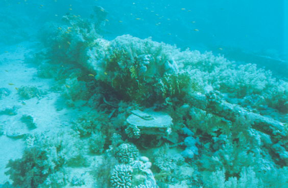Der Ladebaum der Jolanda, hier verstecken sich viele Skorpion-Fische und