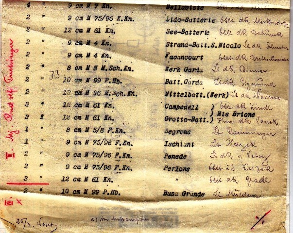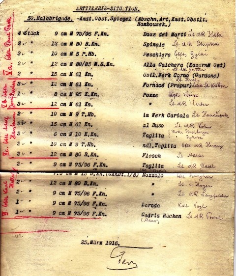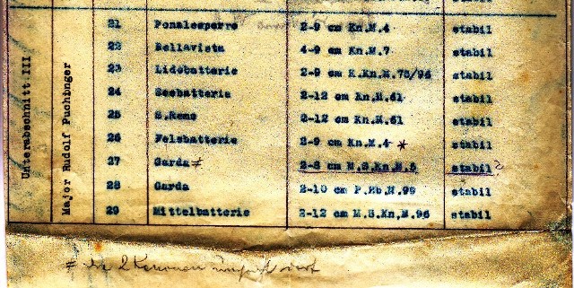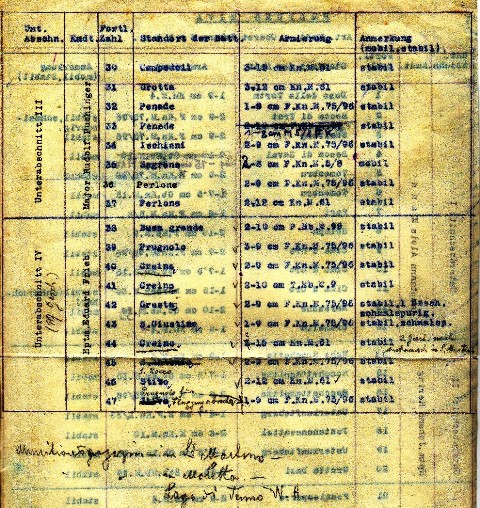 Armierungsliste Riva und Judicarien des Oberst Josef Putzker,