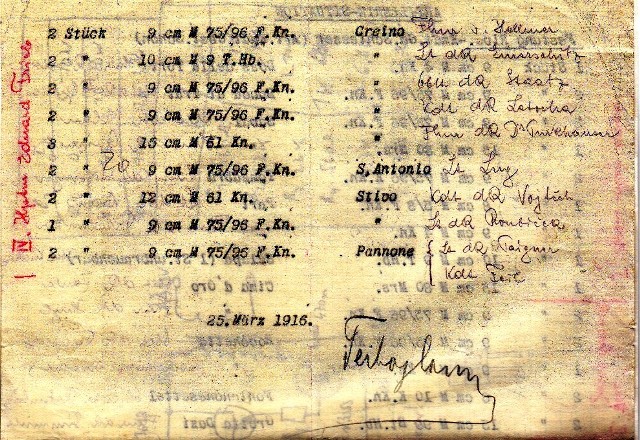 Kommandant der Kaiserjäger vom 24.März 1916 Lista del´armamento sezioni Riva e Iudicarie del 24.Marzo 1916, scritto dal Colonello Josef Putzker, comandante dei Kaiserjäger. Saluti, VJ