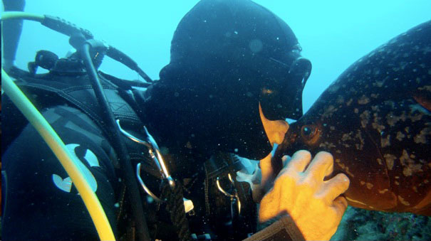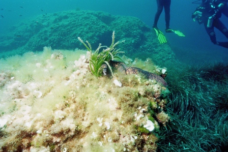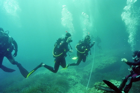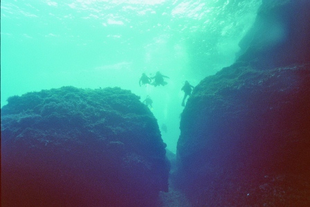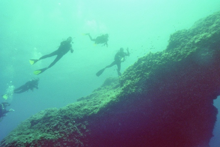 Ausführlich wird bei der Fahrt über die Küste mit allen Einzelheiten sowie über die Geschichte berichtet. Angefahren werden auch die Freeclimbing Grotten, bei denen wunderbare Fotos geschossen werden können, wie sich die Kimber über die Grottendecke klettern, scheinbar der Schwerkraft entsagen, um sich dann von der Decke in das klare Wasser fallen lassen. Die Robinson Tauchbasis mit Armin, ist vom Anfänger bis zum Könner zu empfehlen. Die Basis ist gut organisiert, topp ausgerüstet und mitten in den schönsten Tauchgebieten. Tauchplatz großes Riff: