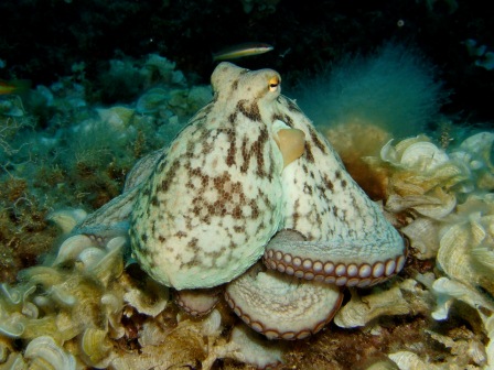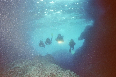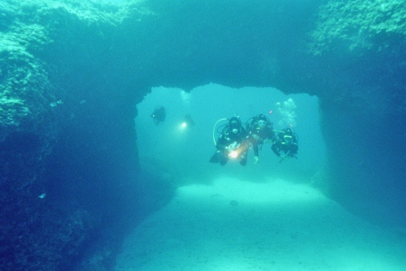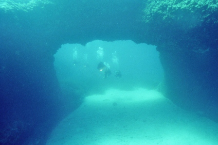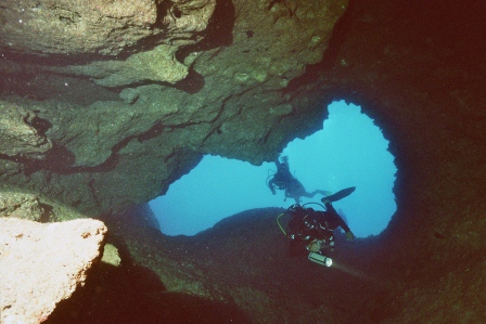 In dem Tauchgebiet befindet sich eine kleine, aber doch geräumige Höhle, die bis ganz hinten betaucht werden sollte. Eine Lampe ist sehr sinnvoll, lassen sich doch viele Lebewesen erspähen und fotografieren.