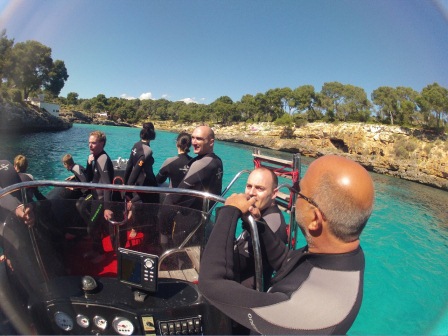 Es hat mit Abstand die bequemste und längste Tauchereinstiegsleiter auf den Balearen und das macht das Einsteigen mit Tauchausrüstung zum leichten Akt. Ein zweimaliges Betauchen von Tauchspots wird durch die Vielfalt der Tauchplätze und durch die Bootsleistung fast unmöglich. Berühmt ist Armin für seine Schnorcheltour, bei der er zeigt, was sein Boot kann. Mal fliegt er mit 40 Knoten über das Wasser oder gleitet geräuschlos in die wunderschönen traumhaften Buchten zum Ankern und Schnorcheln. Dieses Abenteuer ist auch für totale Anfänger geeignet, Masken und Schnorchel werden gestellt und jeder eingewiesen.