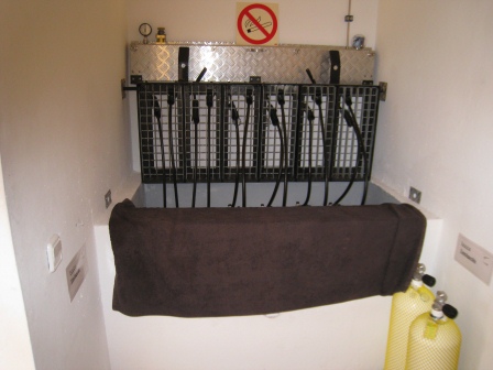 Die Kompressoranlage (ein V15 Silent der Firma Bauer) ist topp gewartet und die Leistung sorgt für eine schnelle Füllung der Flaschen, die in allen gängigen Größen vorrätig sind.