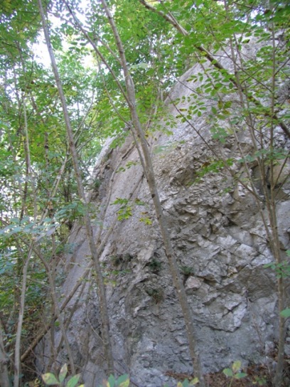 An diesem Felsen war die Sperre westlich angebaut. Die Straße machte