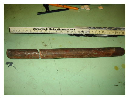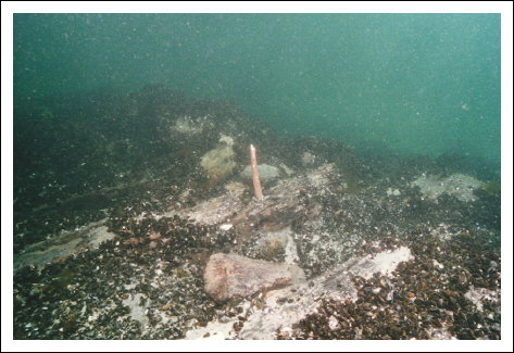 die Holzbalken des Wracks mit den großen Kupfernägeln den Kielverlauf kann man genau verfolgen