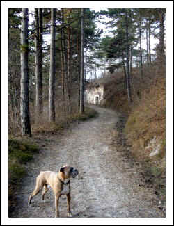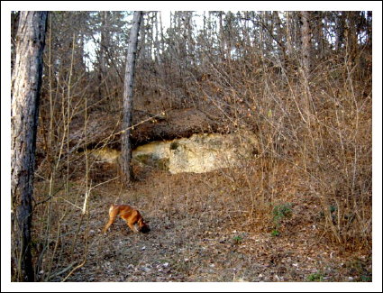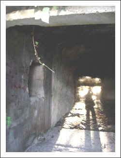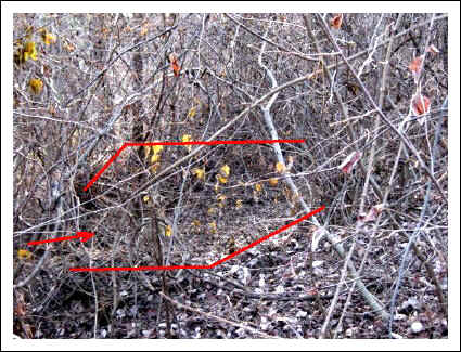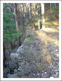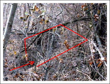 Schwer erkennbar, aber es handelt sich um eine große gedeckte Artilleriestellung mit Eingang