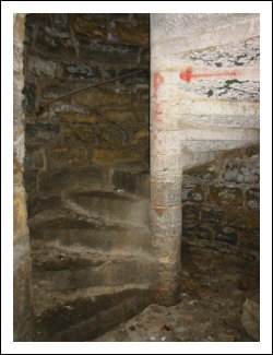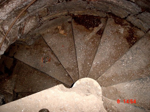 Auf dem Gewölbe ist der Ausgang der Wendeltreppe, ein paar Stufen