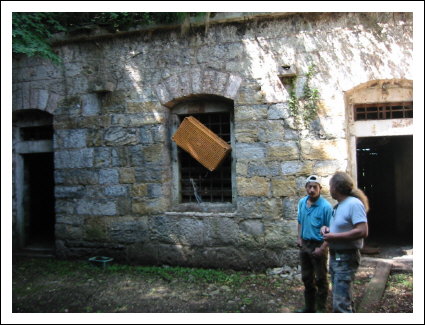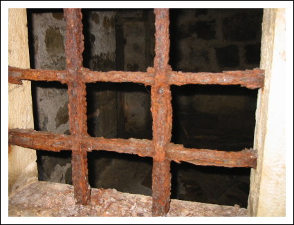 Vor dem Zugang (Fenster) zu den linken Räumen ist ein großer