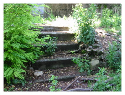Die Treppe ist schwer unter dem Laub zu sehen.